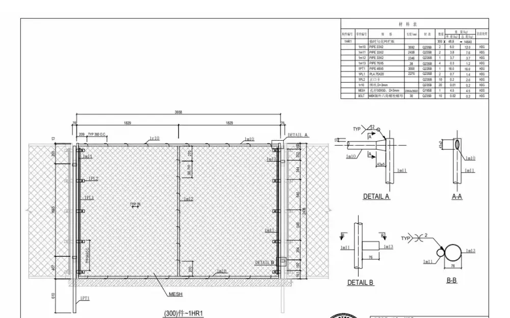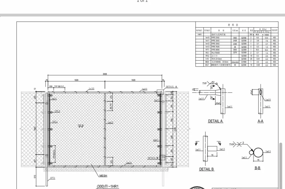 Ukuran umum kanggo pager keamanan logam Liweiyuan kalebu: 2 meter kanthi dhuwur 1,5 meter; 2,5 meter dawa nganti 2 meter; lan kaping 3 meter kanthi dhuwur 2,5 meter. Ukuran khusus kasedhiya. Bahan baja kalebu Q235B, Q355B, A36, lan A572, rapat standar Eropa lan Amerika.